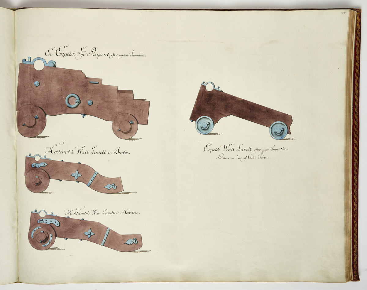 Engelska och holländska lavetter, ritning av Nils Fredrik Ehrenström.