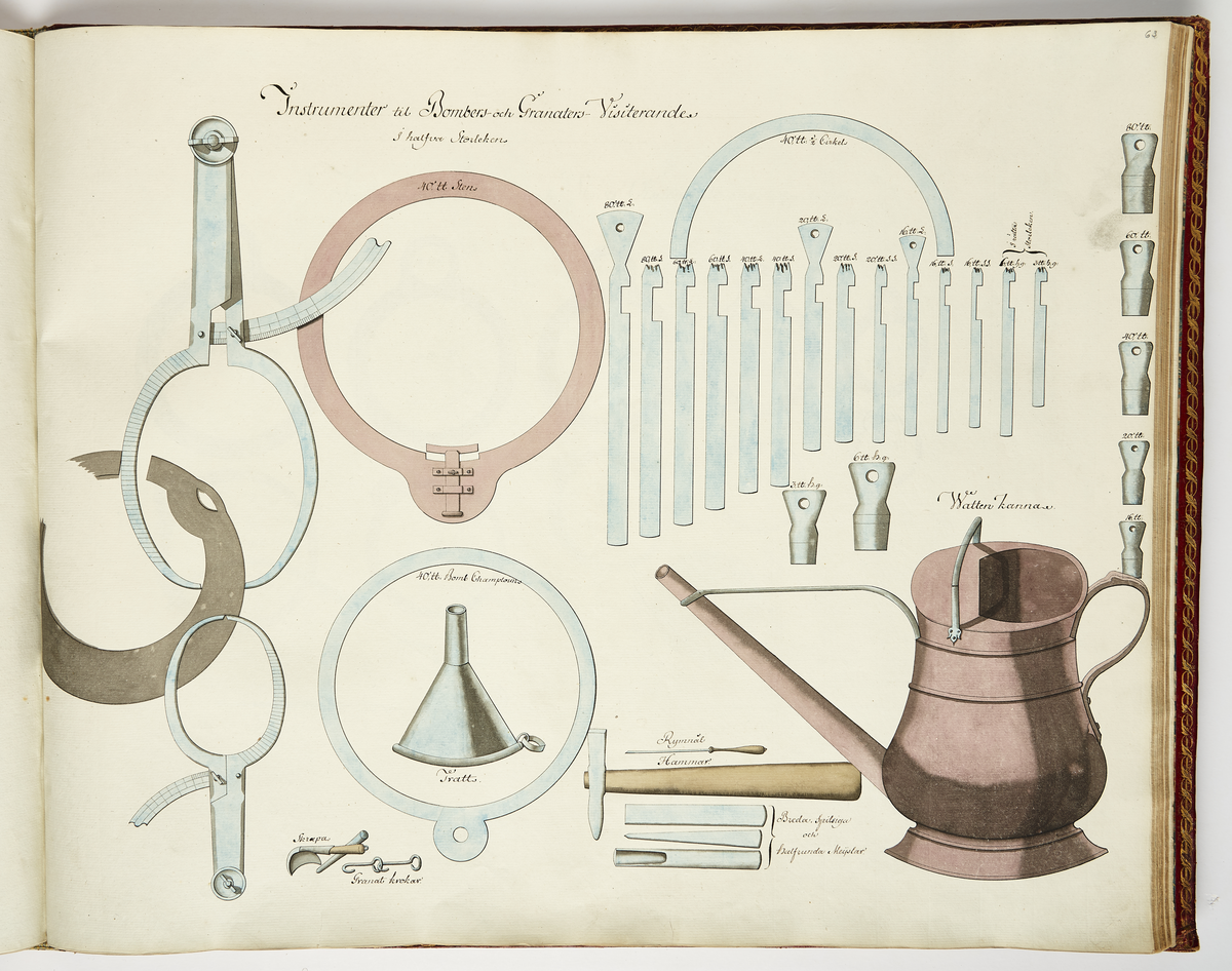 Instrument för visitering av bomber och granater, ritning av Nils Fredrik Ehrenström.