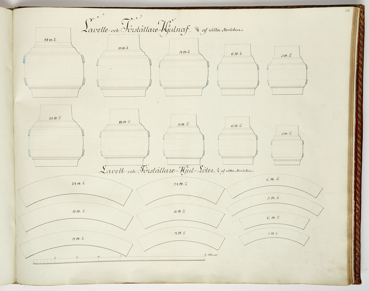 Hjulnav för lavett och föreställare, ritning av Nils Fredrik Ehrenström.