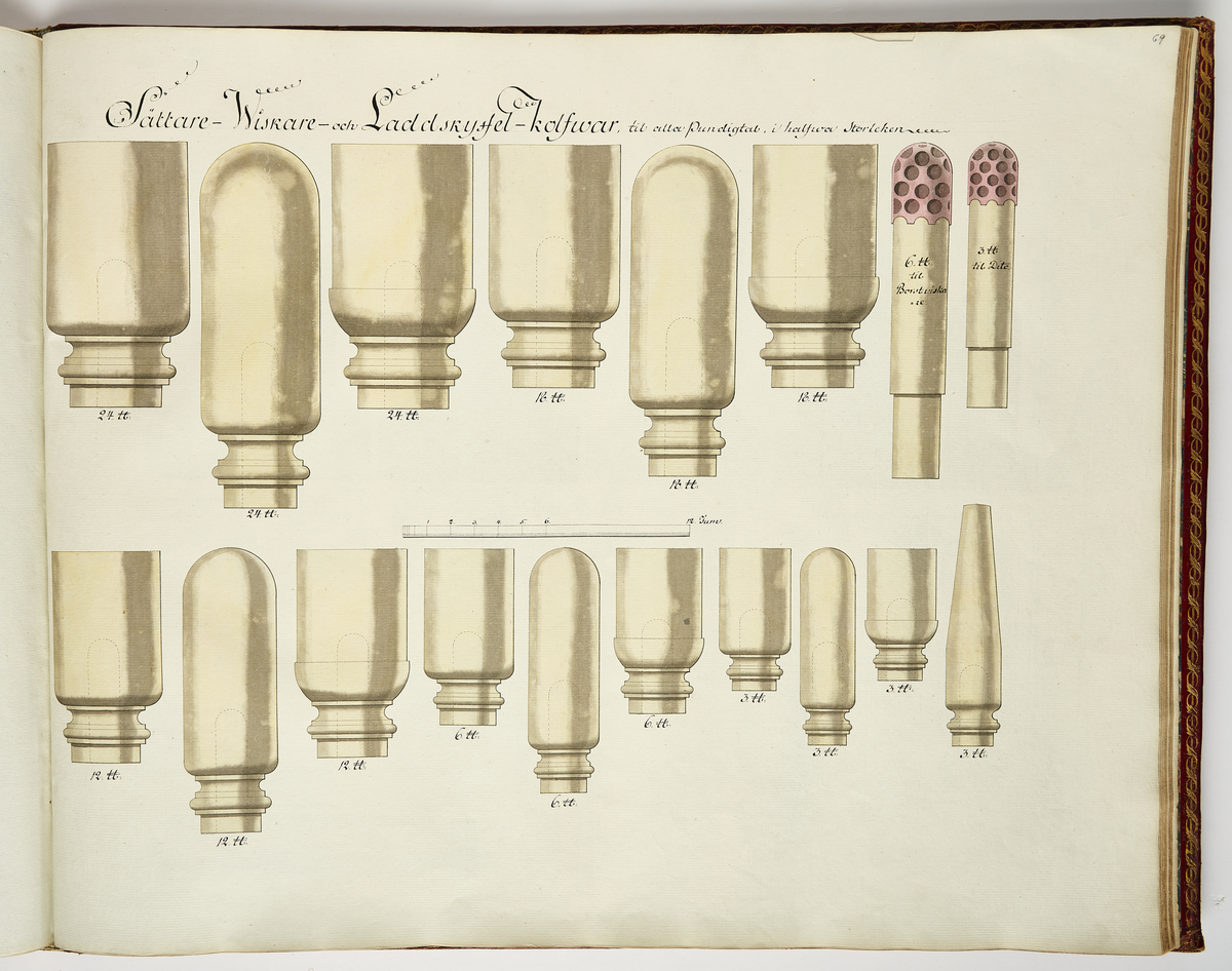 Sättare-, viskare- och laddskyffelkolvar, ritning av Nils Fredrik Ehrenström.
