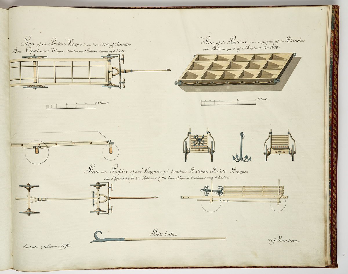Ponton och pontonvagnar, ritning av Nils Fredrik Ehrenström.
