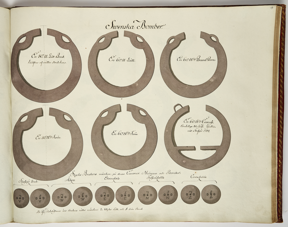 Svenska bomber, ritning av Nils Fredrik Ehrenström.