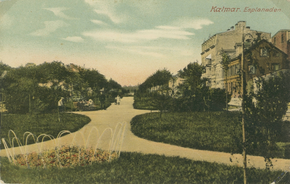 Kolorerat vykort med motiv av den nyanlagda Esplanaden i Kalmar.