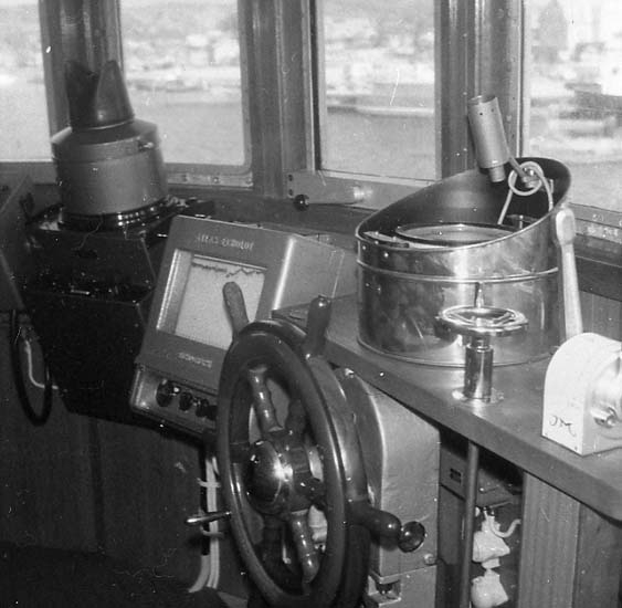 Medföljande text: "Fiskebåten "Randi" byggd 1965 på Ringens Båtvarv, Marstrand, detaljbild av styrhytten. (se även R.68:4, R.69:2).