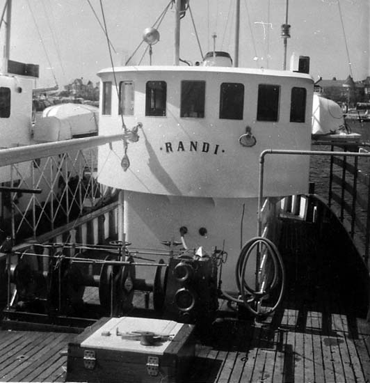 Medföljande text: "Fiskebåten "Randi" byggd 1965 på Ringens Båtvarv i Marstrand. (se även R.69:1, R.69:2). Observera lättmetallhytten. Originalfoto tillhörande Jean Dahlström, Marstrand".