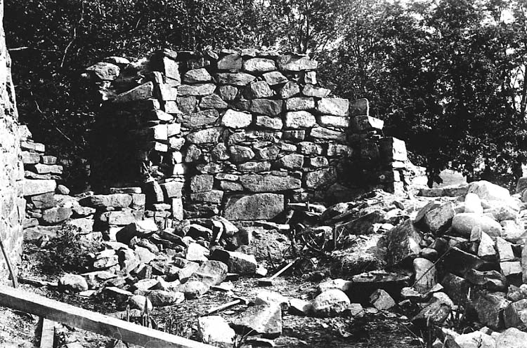 Titel: Medföljande text: "Ytterby kyrkoruin. Interiör m. NV fönstret. Vid restaureringen 1927".