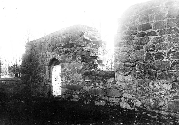 Medföljande text: "Ytterby g:a kyrka. Interiör av SÖ väggen med S portalen. Efter restaureringen 1927".