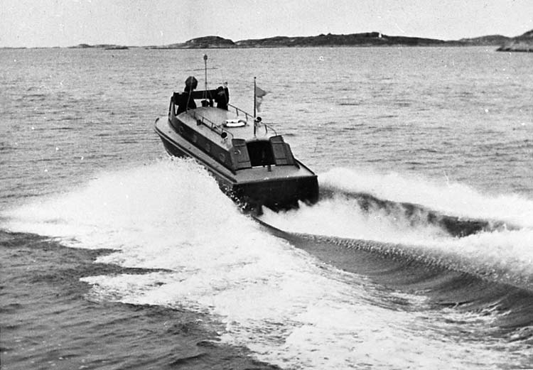 Medföljande text: "Tullbåt byggd på 1950-talet vid Nilssons Båtbyggeri, Strömstad. Originalfoto från Nils Nilsson, Strömstad".