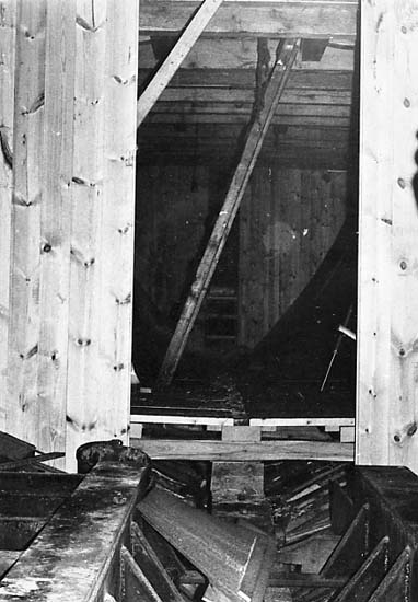 Medföljande text: "Byggnation av fiskebåt (förmodligen Randi byggd år 1965, såld till Fotö) vid Ringens Båtvarv i Marstrand. Bilden tagen från motorrummet och föröver. Närmast i bild syns järnbädden till motorn. Originalfoto tillhörande Jean Dahlström, Marstrand. Se även R. 77:1, R.78:3, R.78:4, R.79:4, R.80:1, R.80:3, R.80:2, R.81:1, R.81:2, R.81:3, R.81:4, R.82:1, R.82:2, R.92:1, R.92:2, R.92:3, R.92:4, R.93.1, R.93:2, R.93:3, R.93:4".