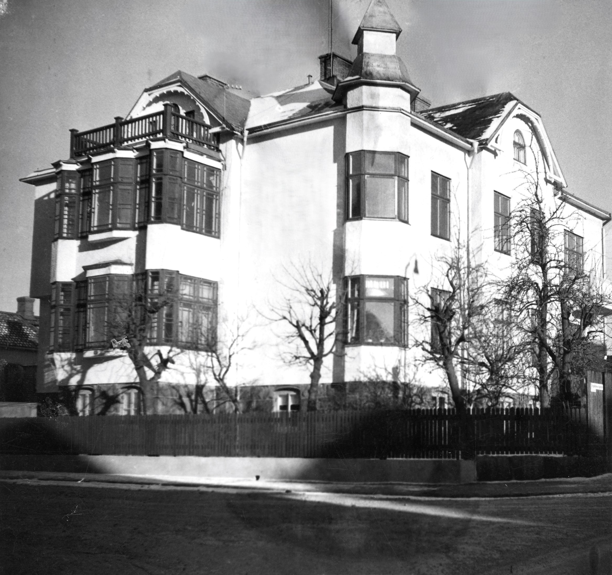 Villa. Exteriör. Kv Oxen 1, Engelbrektsgatan-Götagatan. Bilden tagen med anledning av att huset skall ändras till ordenshus. Till vänster går Götagatan. Bilden tagen mot öster. (Bilden behäftad med skuggningar)