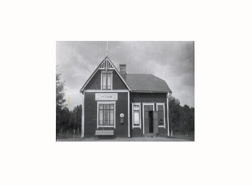 Stationsbyggnad. Spetsebo järnvägsstation omkring 1919-20. Stationen anlades vid Varberg-Ätrans Järnväg som invigdes 1911.
