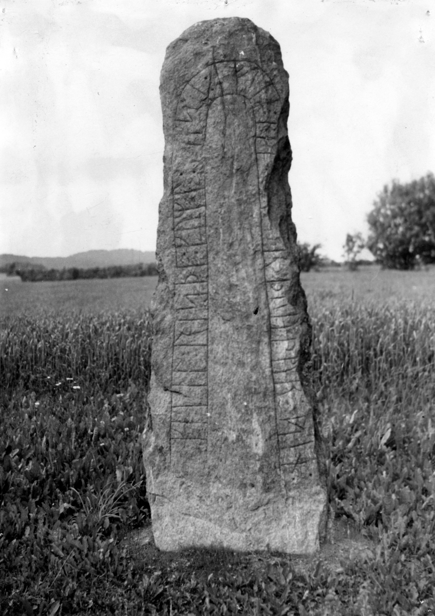 Runstenen vid huvudingången till Rogberga kyrka. Inskruptionen är översatt "Kettil reste denna minnesvård efter _ _ _ sin morbror". Då gamla kyrkan restaurerades lades runstenen ner i grunden till det på sydsidan tillbyggda vapenhuset. Där låg den till 1867, då gamla kyrkan revs. Stenen tillvaratogs och skadades då i ena kanten, så att tre runor ej med säkerhet kan bestämmas. Den restes på sydöstra hörnet av kyrkogården. 1948 flyttades den till norra sidan av uppfarten till kyrkan.