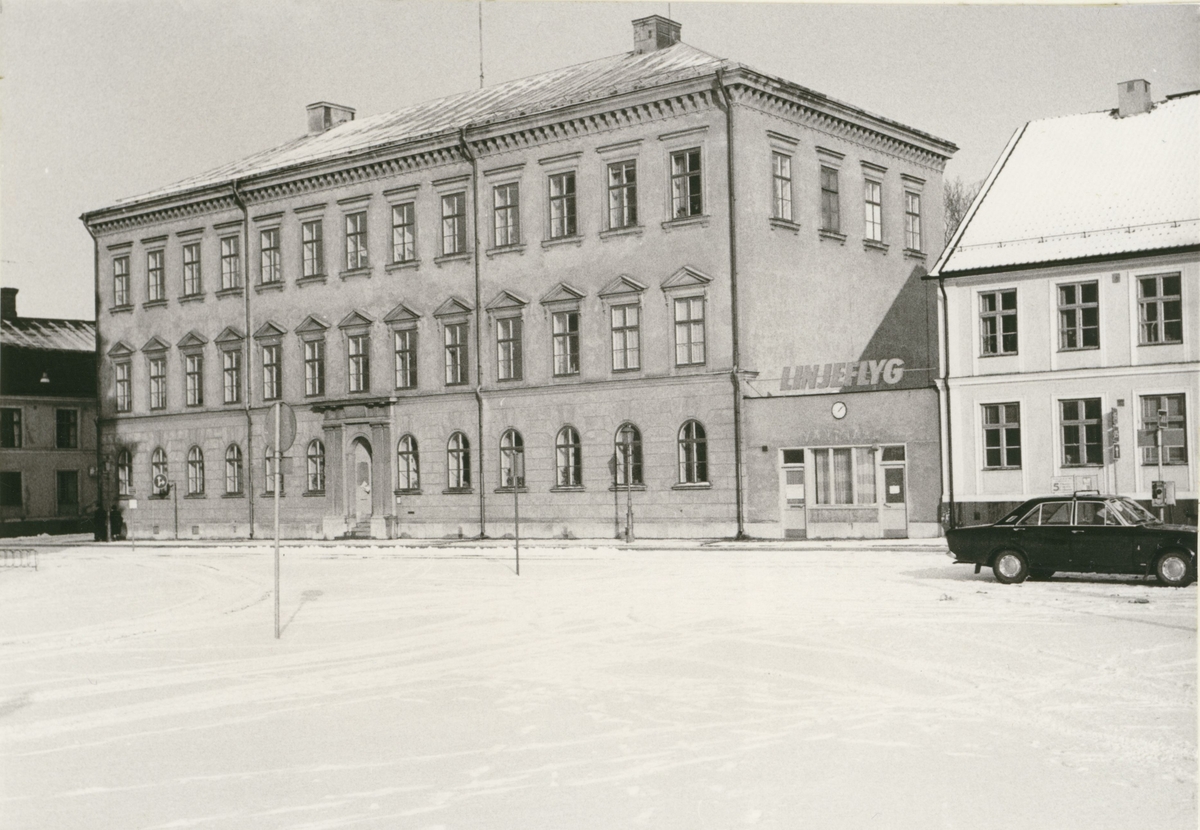 Kalmars allmänna läroverk vid Stortorget, byggt 1834-35, efter ritning av C.F. Sundvall. Till höger syns Linjeflygs kontor.