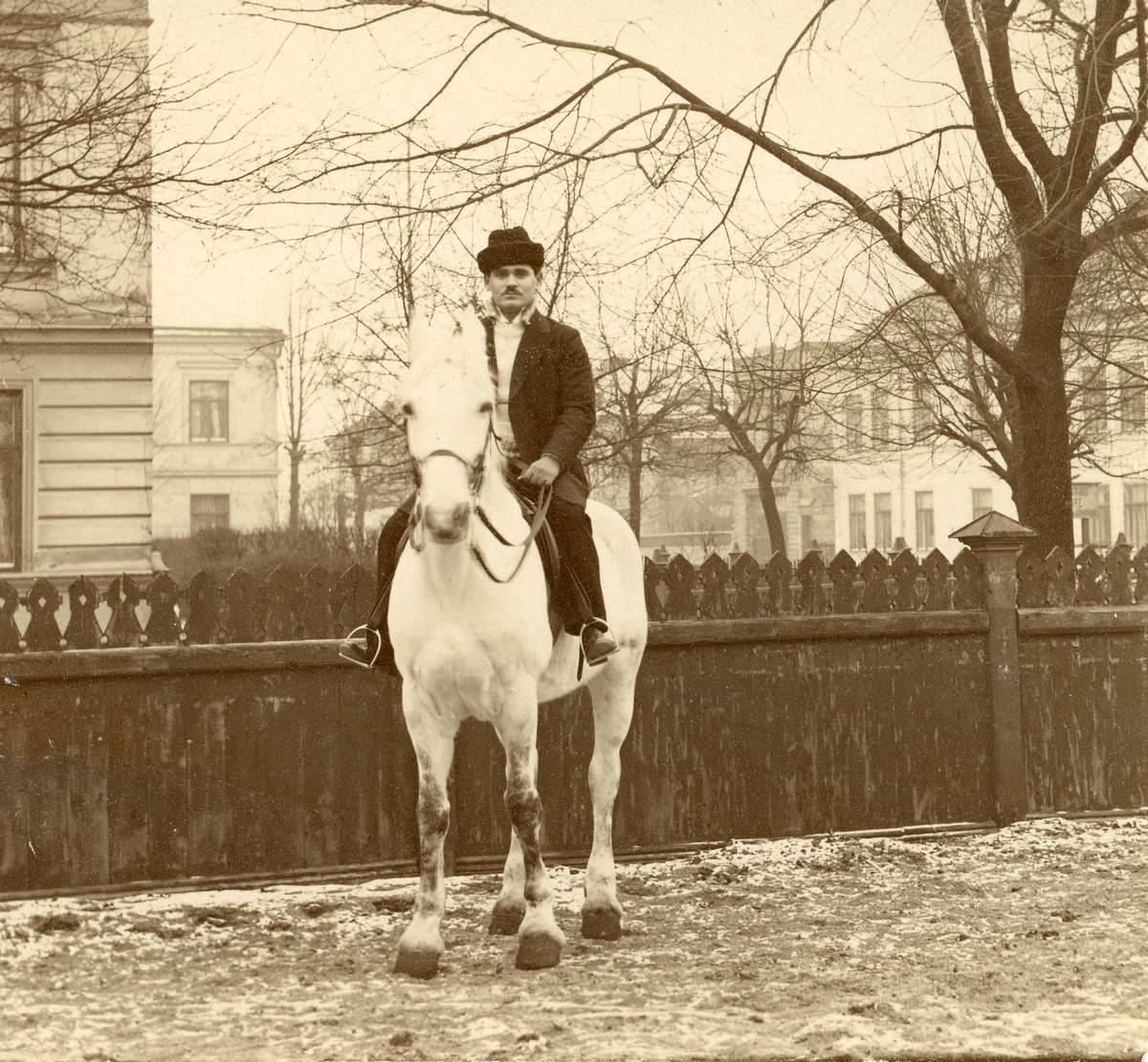 Foto av en musiker på ridtur (enligt text skriven i albumet).