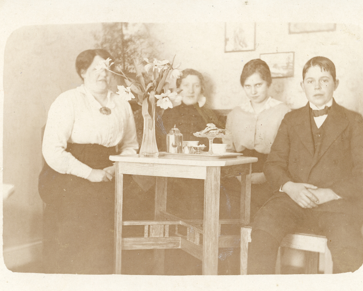 Foto av Maja, Gerda och Karl-Emil på konditoriet i Karlskoga (enligt text skriven i albumet).