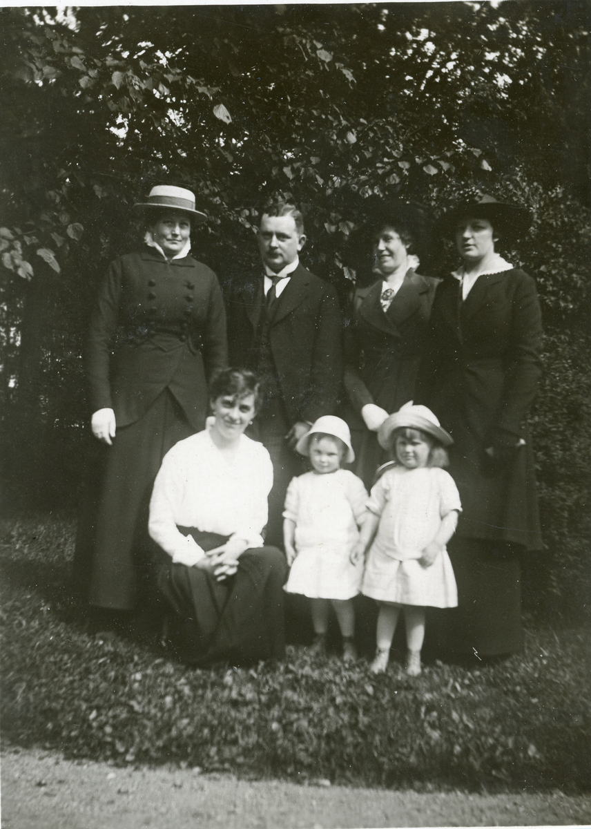 Titel: Foto av Hulda, Elsa, Anna-Lisa, Far o Mor, barnen Inga-Lill och Torborg(enligt text skriven i albumet).
