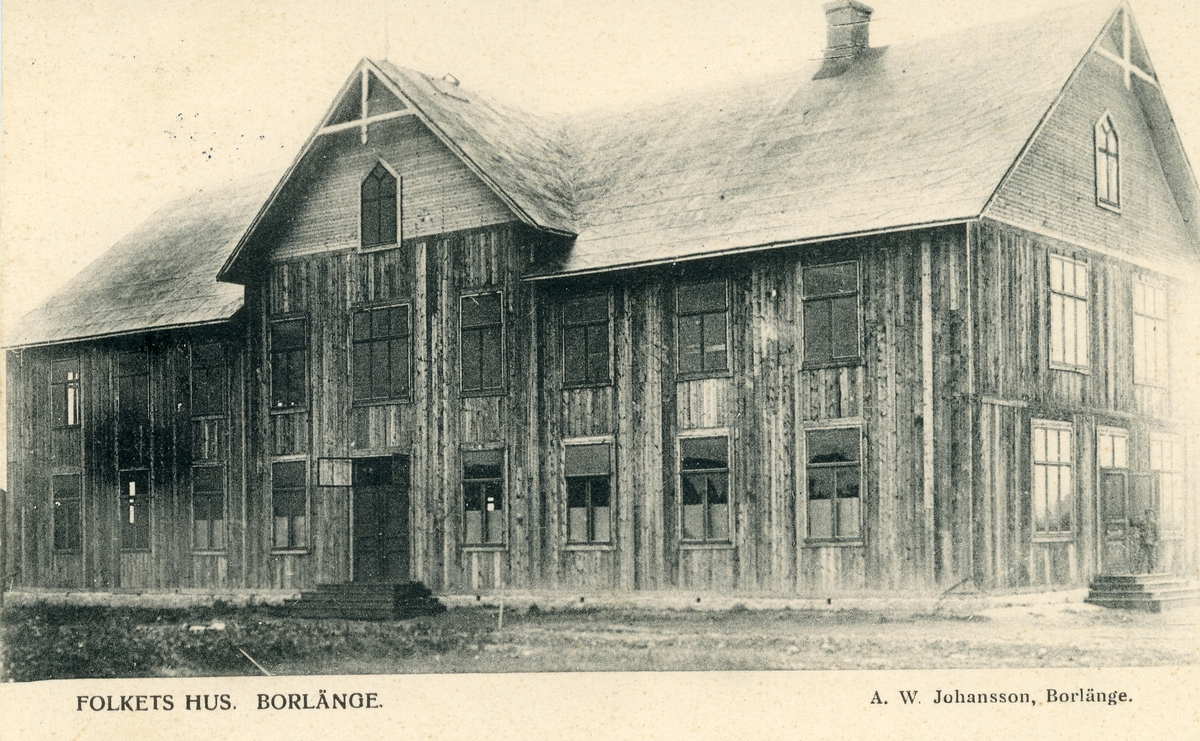 Brevkort adresserat till sjuksköterskan Amanda Palm. Motiv av Folkets Hus, Borlänge, A. W johansson.