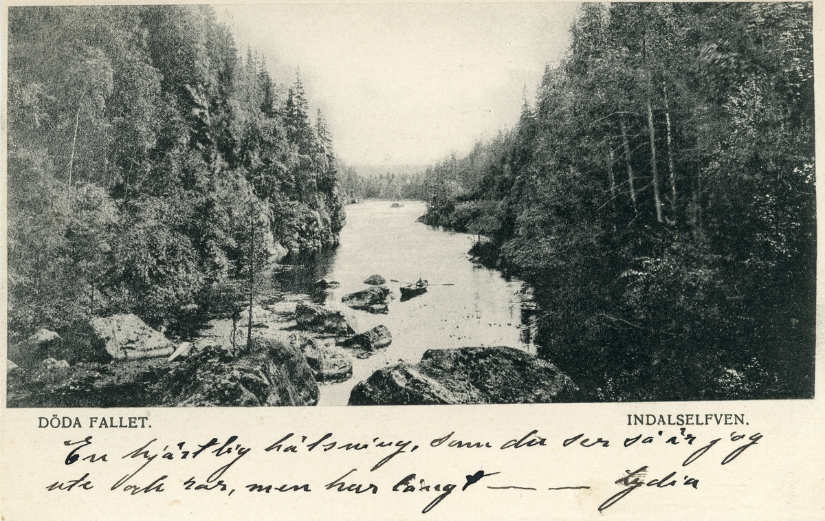 Text på framsidan: "En hjärtlig hälsning, som du ser så är jag ute och far, men hur långt-- Lydia".