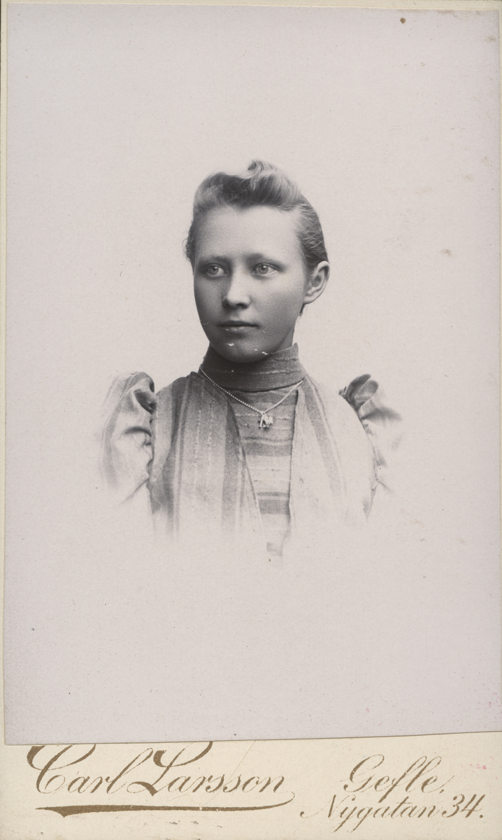Porträtt av Lydia Wåhlin ? hösten -93 (enligt text baksida kort).
