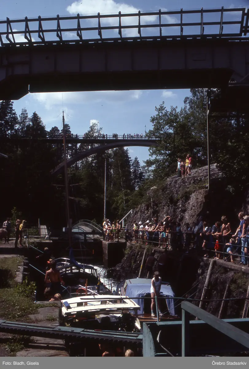Nyfikna ser på slussningen i Dalslands kanal, 1977