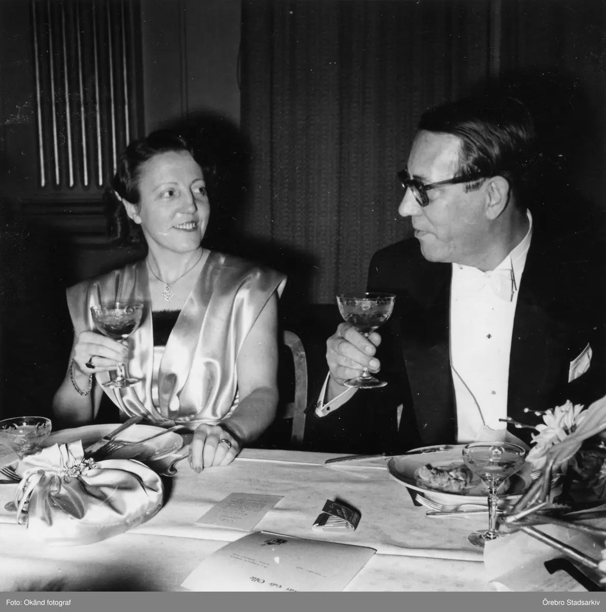 Direktör Olle Andersson skålar med sin bordsdam på sin 50-årsdag, 1948-11-27