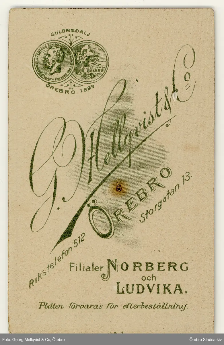 Baksida till visitkort från G. Mellqvist & Co, 1900