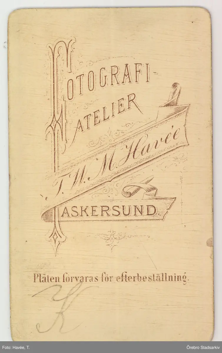 Baksida till visitkort från T. W. M. Havée, 1870-tal