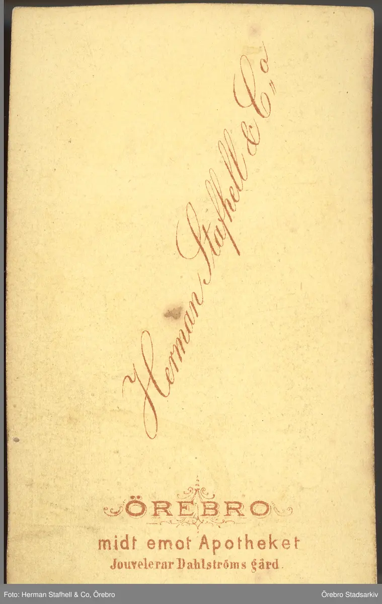 Baksida till visitkort från Herman Stafhell & co, 1867-1874