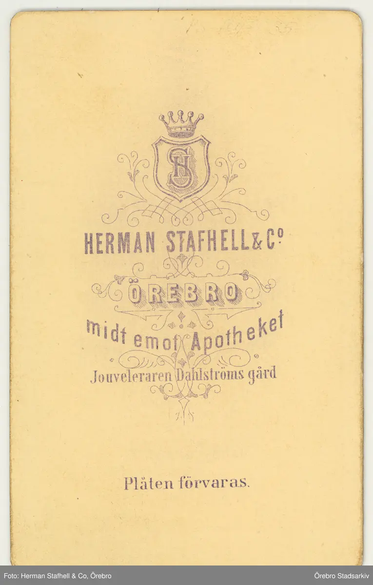 Baksida till visitkort från Herman Stafhell & Co, 1867-1874