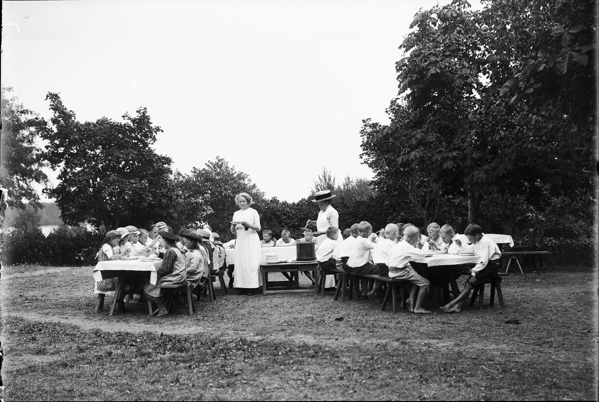 Uppsala Stads barnkoloni - måltid, Sandika, Harg socken, Uppland