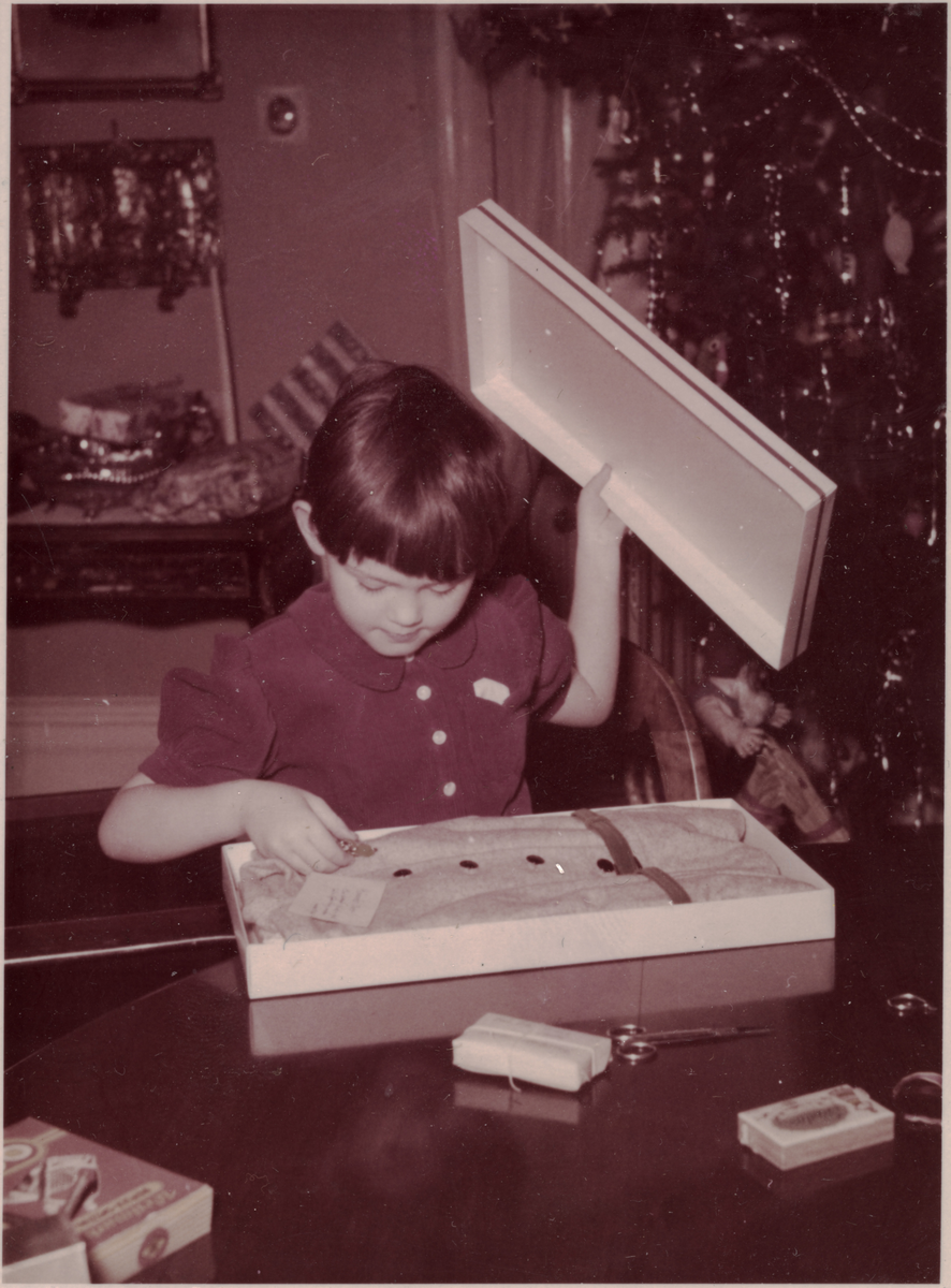 Julafton. Torborg öppnar paket