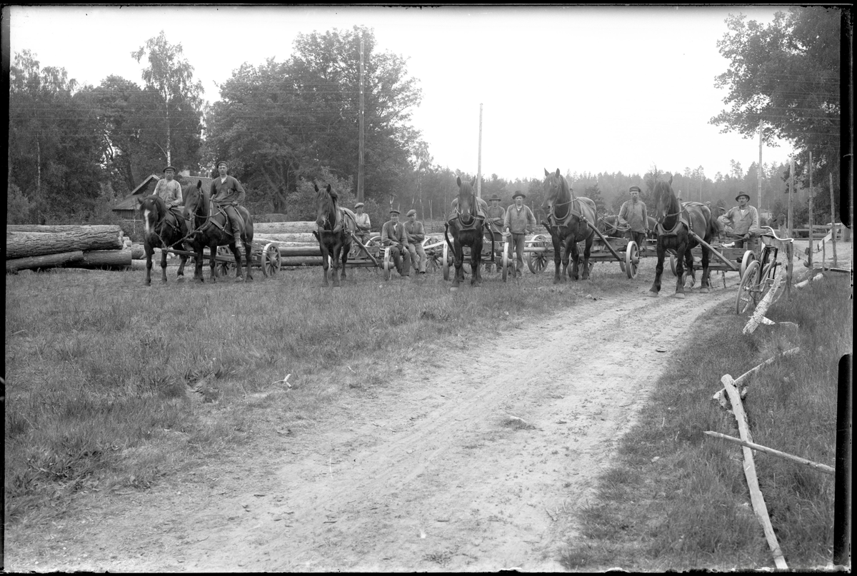 Axel Axelsson och drängen Nils Gustafssonmed häst och vagn