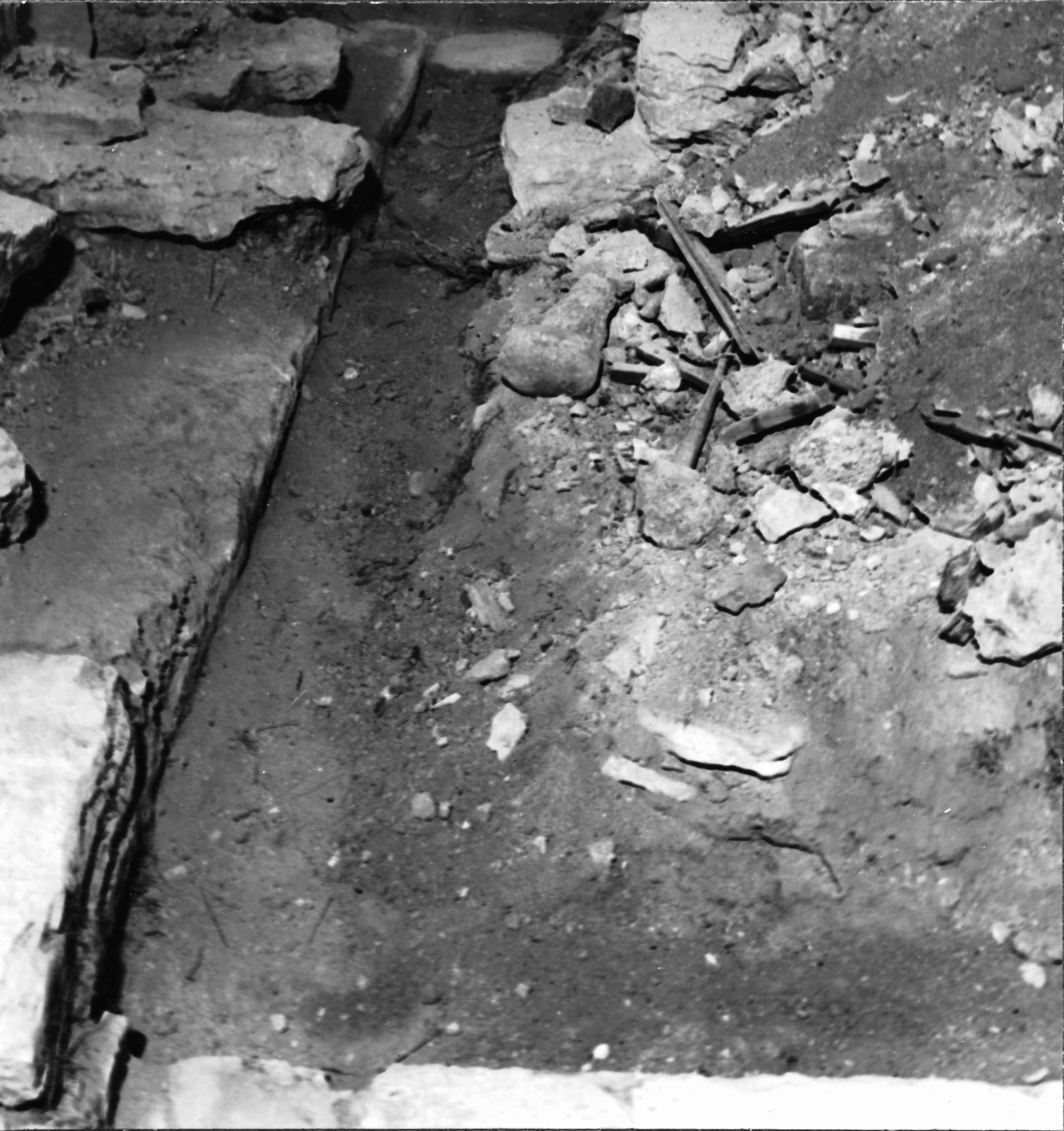 Utgrävning i tornrummet, mot sydvästra hörnet från öster.