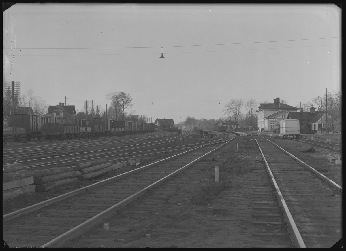 Järnvägsspår vid Kolbäcks station. Västmanl. Läns Tidning. Västerås. Ur Gustaf Åhmans samling.