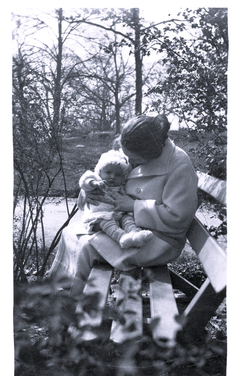 Text baksida kort: "Rune med sin mamma på förmiddagspromenad i Bellevueparken den 7 maj 1925".