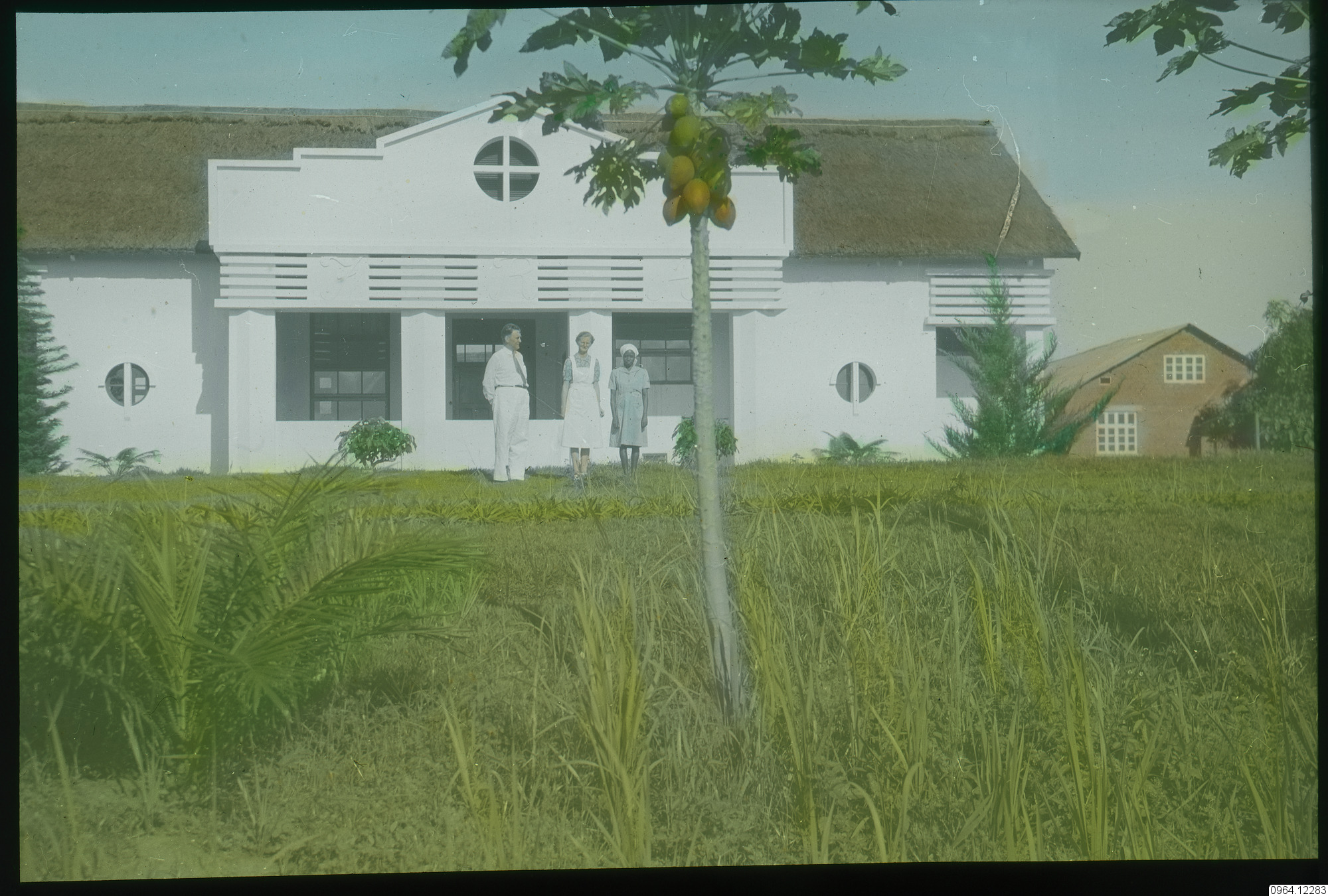 Sjuksköterkor vid Kibunzi. Drottning Astrids maternite de ruine och hörnet av kirurgen. Kibunzi BB.