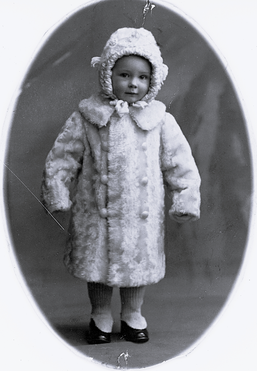 Foto av ett barn i vinterkläder. Bildtext i album: "Sötnos".