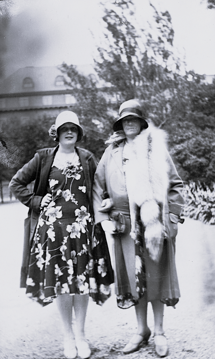 Foto av två uppklädda kvinnor. Text vid bild i album: "Donnor".