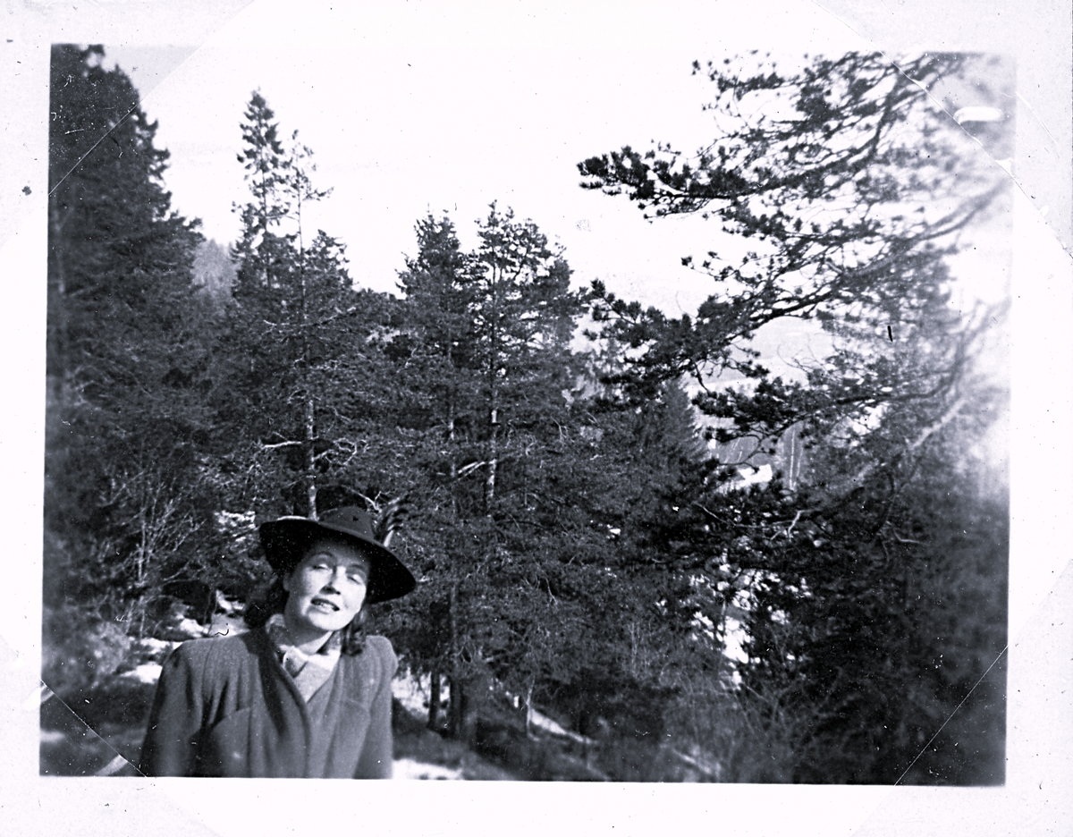 Kvinna som sitter och solar sig i skidbacken.