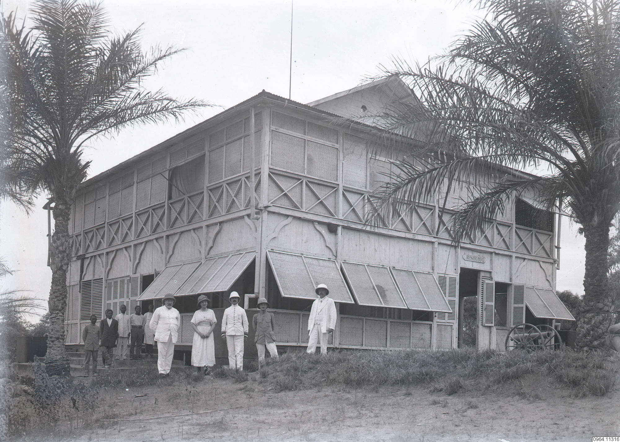 byggnad, gruppbild, hus, missionärer, fotografi, photograph