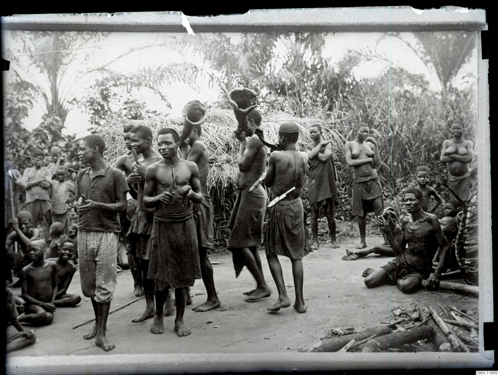 Orkester under dans. Begravningsritual vid Niombo-begravning bland Babwendefolket
