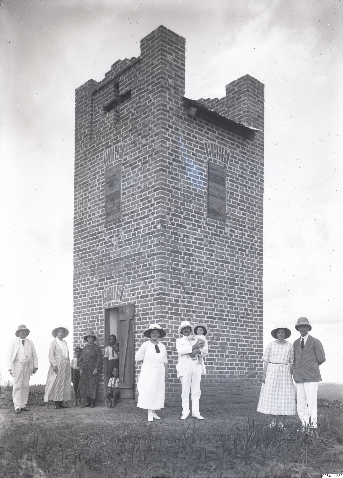 Klocktornet. Jämför bild 0964.10090 tagen vid samma tillfälle. Det är nog paret Aldén och paret Karlman (jfr bild 0964.11337, det är nog samma man).
