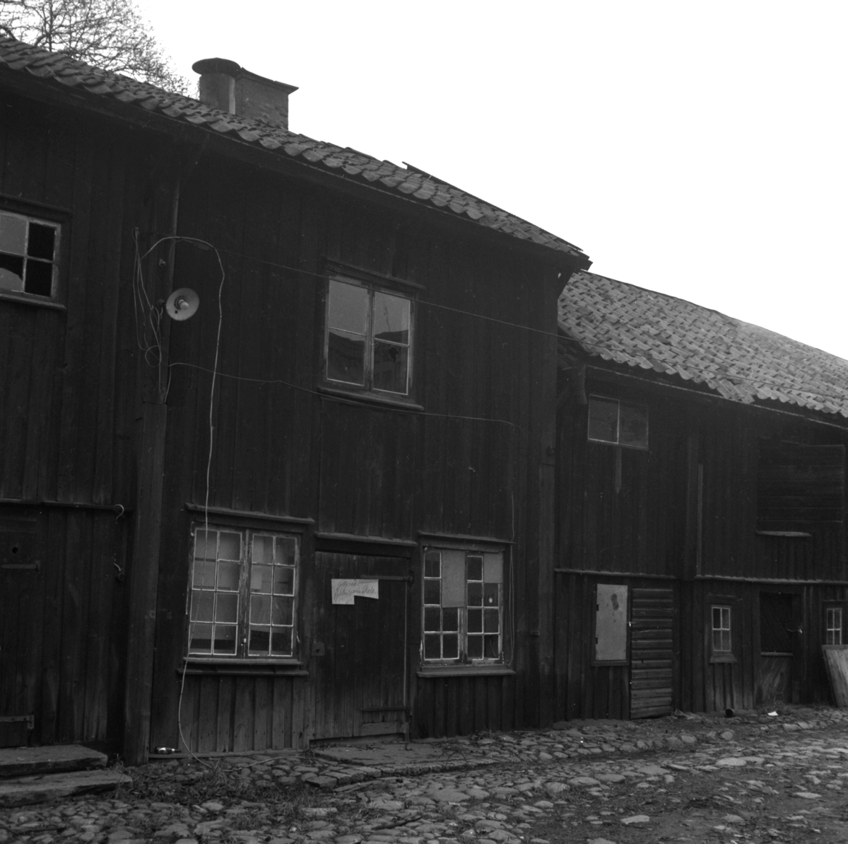 Ekonomibyggnader i kvarteret Almen före renovering i slutet av 1960-talet.