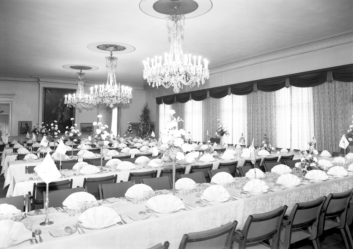 Gustav VI Adolf är på eriksgata och kungabordet står uppdukat på Statt i Arvika den 26 juni 1953.