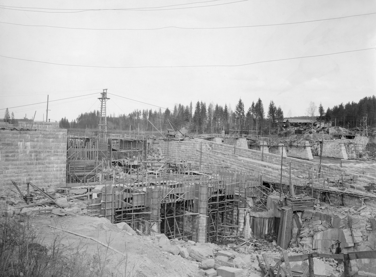 Titel: Kraftverk i Klarälvdalen från norr till söder. En gåva till museet från Ingela Thorsell, Karlstad. Krakeruds kraftstation den 30 april 1919.