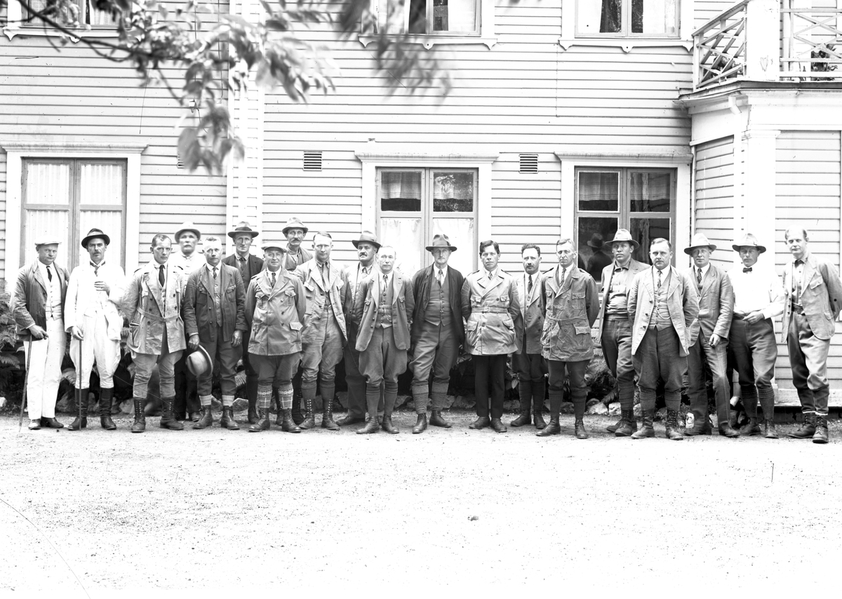 Gruppbild med personer troligen verksamma inom skogsnäringen.
