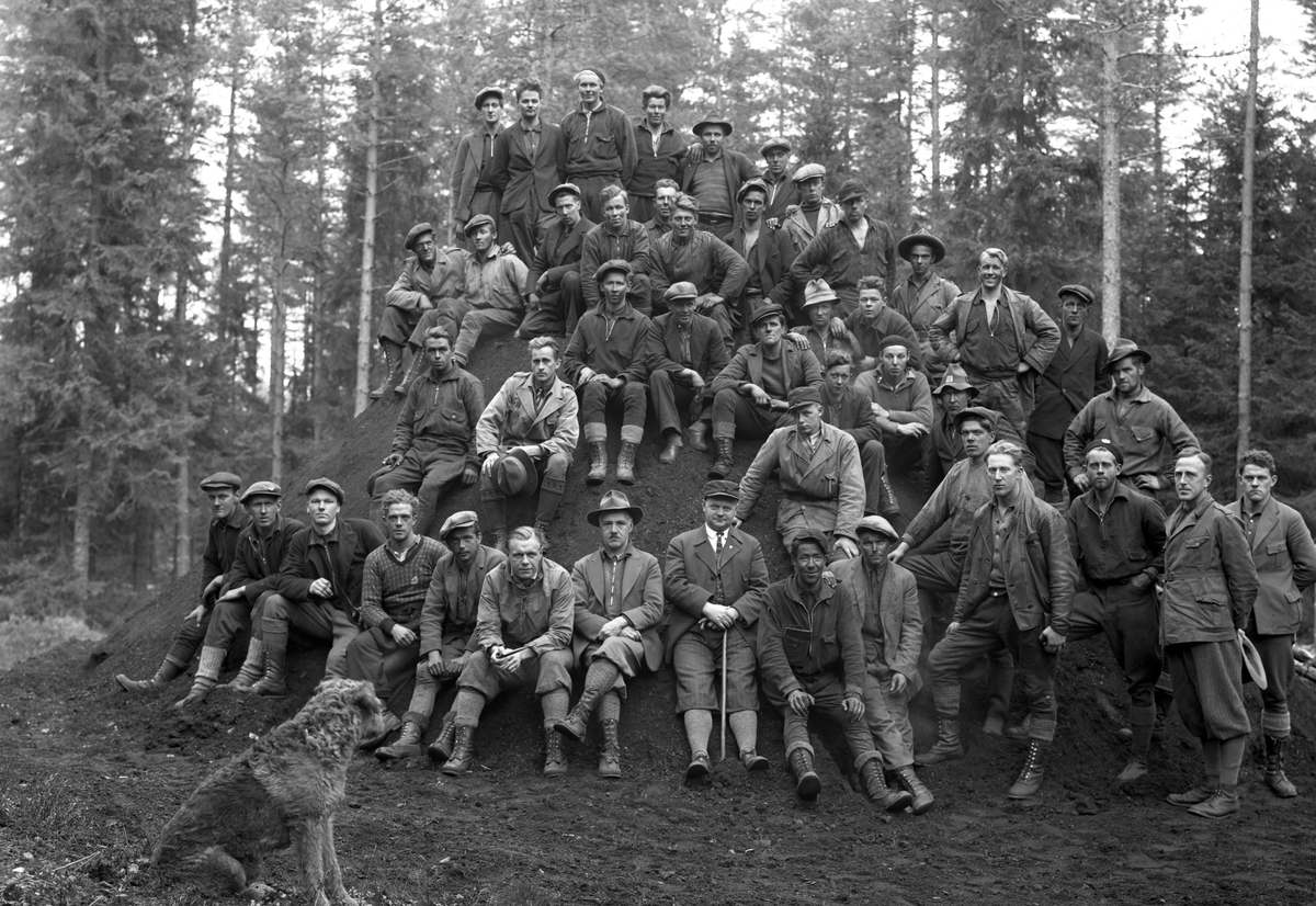 Bild med anställda inom skogsnäringen, bl a då kolmilearbetare.