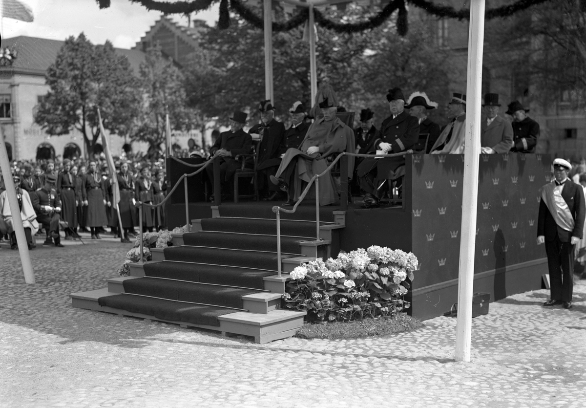 Bildsvit från Karlstads 350-års jubileum den 29 maj 1934. Gustav V på festtribunen.