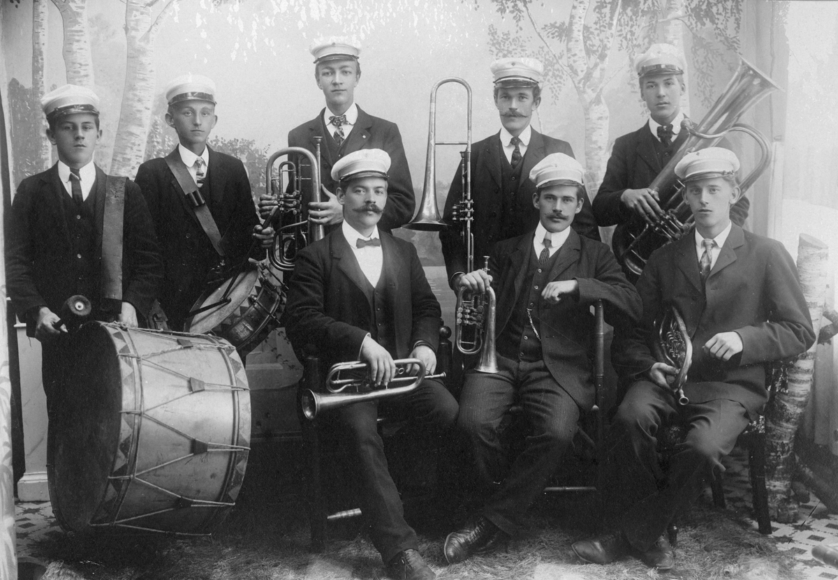 Vålbergs musikkår runt 1910. En gåva till museet från Kurt Nylén vars far, David Nylén, står i mitten. Fotograf var Julie Asker med ateljé ute vid Trossnäs.