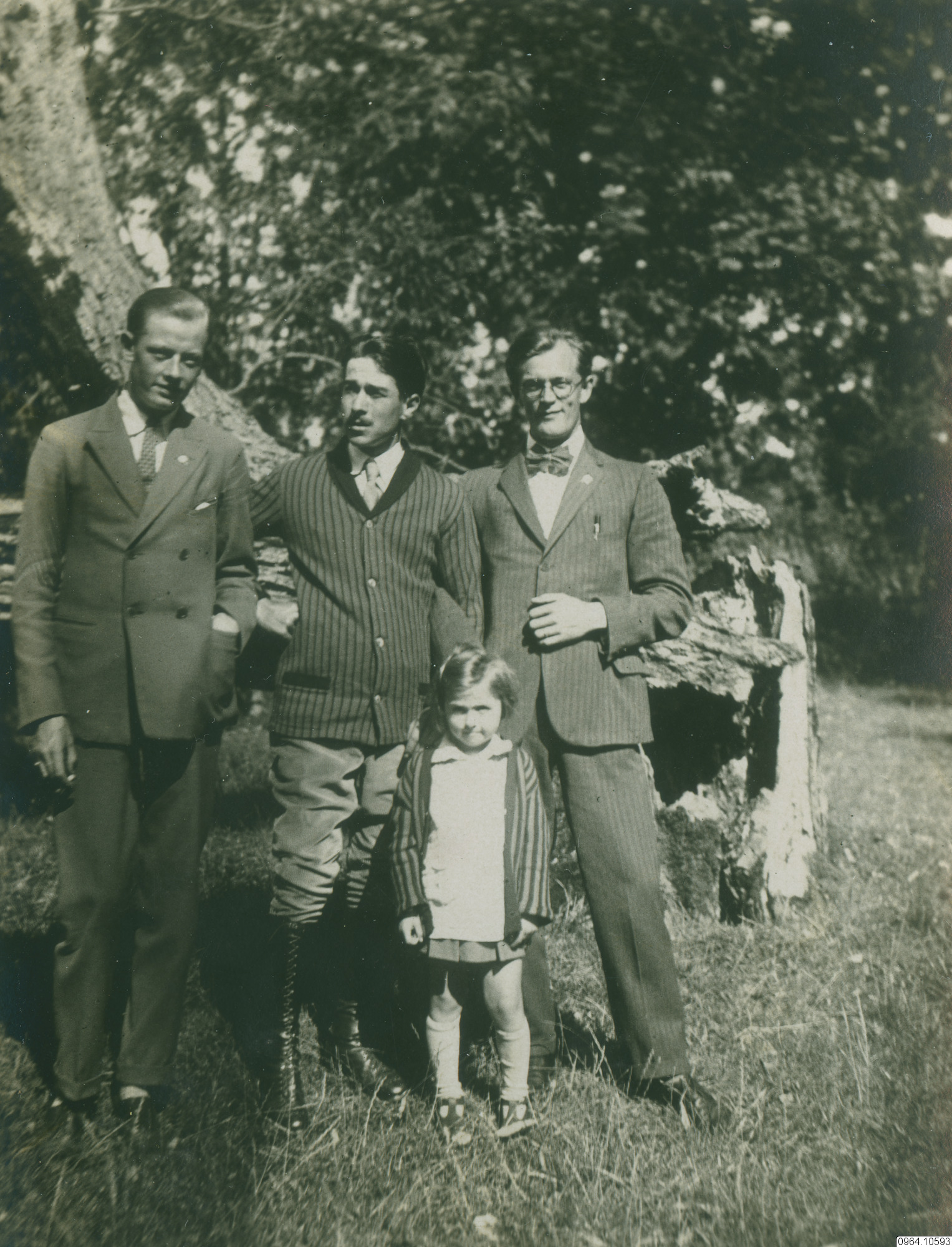 Tre män i kostym och en liten flicka. Möjligen är en av dem Artur Vilén.